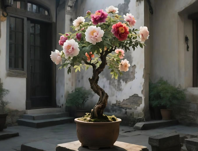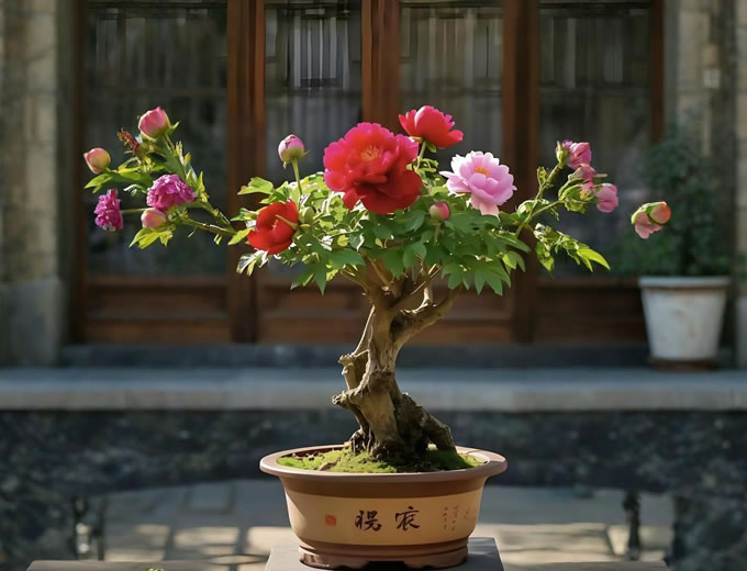 西南牡丹品种群:四川彭州、云南大理等地,花期较长,多台阁型花