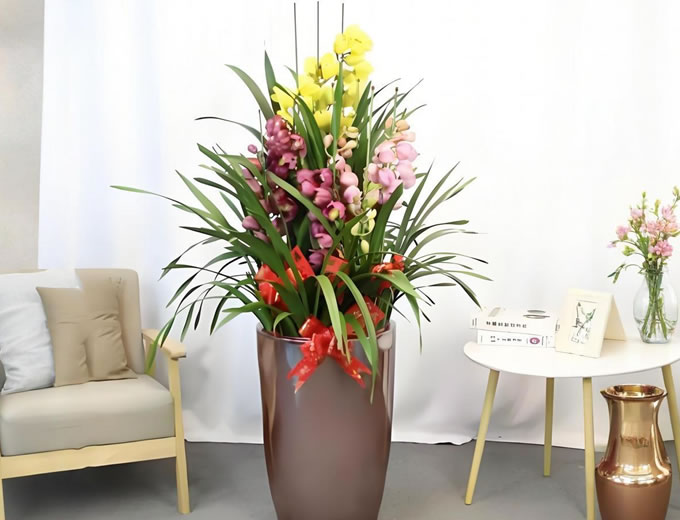 大花蕙兰,作为兰科兰属的人工杂交名品,凭借其硕大艳丽的花朵、长达数月的花期和高雅脱俗的气质,被誉为“兰花新星”。它既传承了国兰的幽香典雅,又融合了洋兰的色彩斑斓,是年宵花市场上的热门选择。