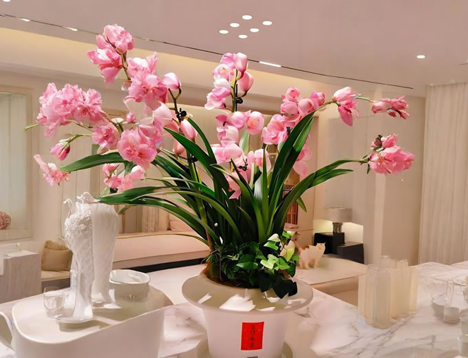 不同花色寓意不同:粉红代表热情,白为痴情,淡绿象征志气,黄则寓意万事如意。常作礼品盆花,用于装点家居或馈赠亲友。