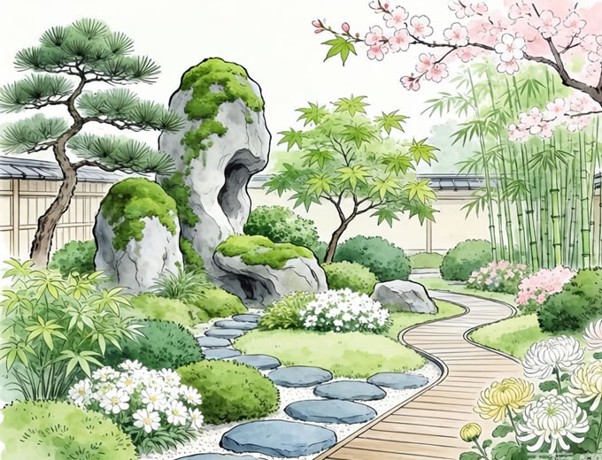 多层种植是让小花园在感觉上显得更大,更舒适的最佳途径之一。在底层使用低生长的地被植物(如草坪);在上面的第二层使用小灌木或多年生植物;然后用较高的植物,如小花树,竹或矮果树。这样,就可以创造一个在垂直方向上有层次的花园小境了~