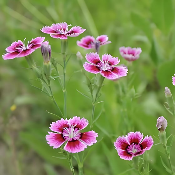 “石竹”之名源于其茎节膨大如竹,且常生于石缝之间。唐代司空曙曾吟咏:“谁怜芳最久,春露到秋风”,赞其生命力顽强。在园艺中,重瓣品种被称为“洛阳花”,被视为草花中的佳品。李白《宫中行乐词》中“石竹绣罗衣”更说明其在古代已被用作服饰纹样,象征精致与雅趣。