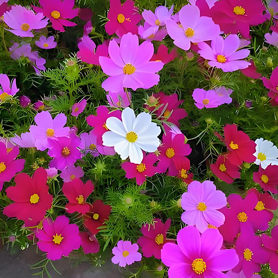波斯菊园艺品种多样,按花型可分为单瓣与重瓣,按株型有高杆、中杆和矮生类型: