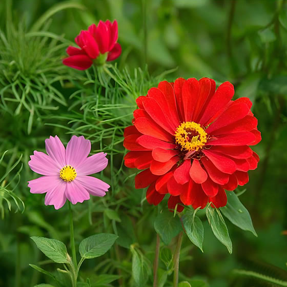 花型花色:头状花序,花径5–7厘米,花色多样,包括深红、紫红、粉红、黄、白等,有单瓣与重瓣之分。