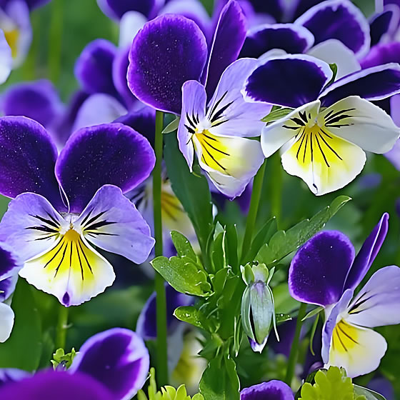 花语丰富:不同颜色寓意不同——紫色象征“沉思”,黄色代表“忧喜参半”,白色寓意“忠诚”;整体花语为“沉思、快乐、请思念我”。
