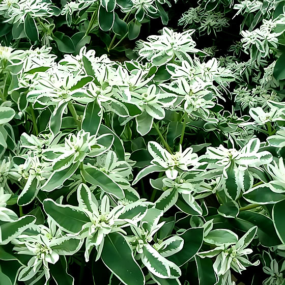 叶片:下部叶互生、绿色;顶端叶轮生,边缘呈鲜明的乳白色,形成强烈色彩对比,观赏性极强。