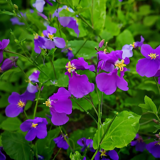 花朵:四瓣十字形排列,远看如紫雾弥漫,近观玲珑可爱。