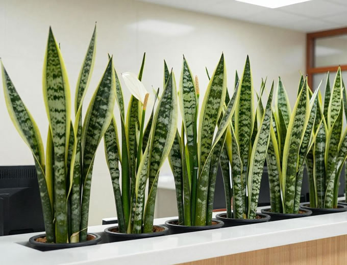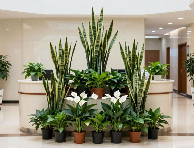 银行营业厅:注重安全与整洁,选用无刺、低维护的虎皮兰、白掌等品种,契合金融场所专业形象。