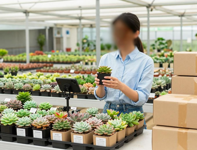 多肉植物、网红热植等通过“直播+发货”模式销往全国。例如四圩社区基地年销80多万盆多肉,收入达350万元;上海浦东市民园艺中心直供百余种新优花卉,支持一站式选购与养护指导。