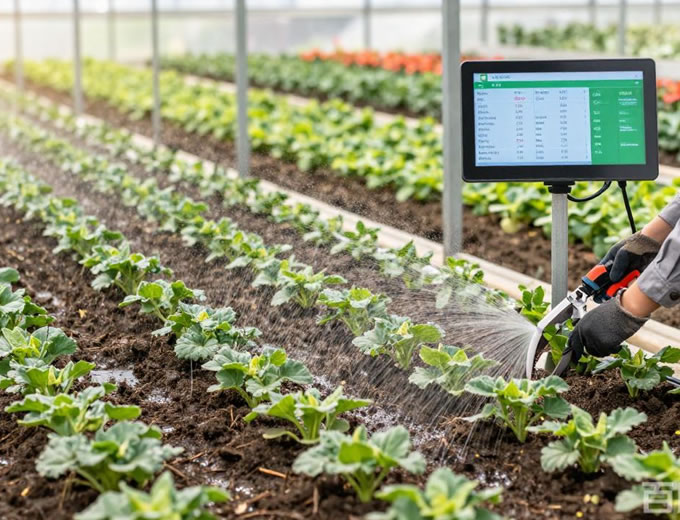 水肥一体化:依据生长周期智能灌溉、精准施肥,观花植物在花芽分化期前后重点补肥;