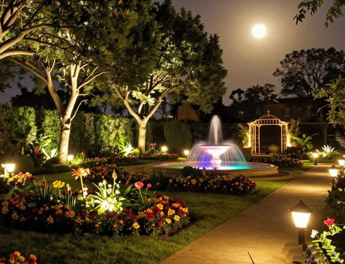 园艺照明设计是通过科学布光与艺术构思相结合,为庭院、花园、绿地等户外空间提供功能性与观赏性兼具的夜间照明方案,不仅能保障安全通行,更能突出景观重点、营造氛围,让园林在夜晚焕发独特魅力。